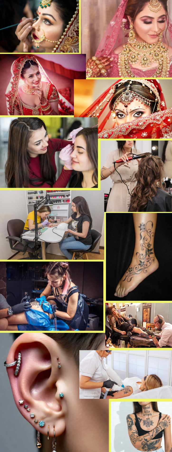 We empower individuals with professional training programs in tattoo artistry, cosmetic salon services, and bridal makeup. Our comprehensive courses are designed to equip you with the skills and expertise needed to excel in these creative and rewarding fields.